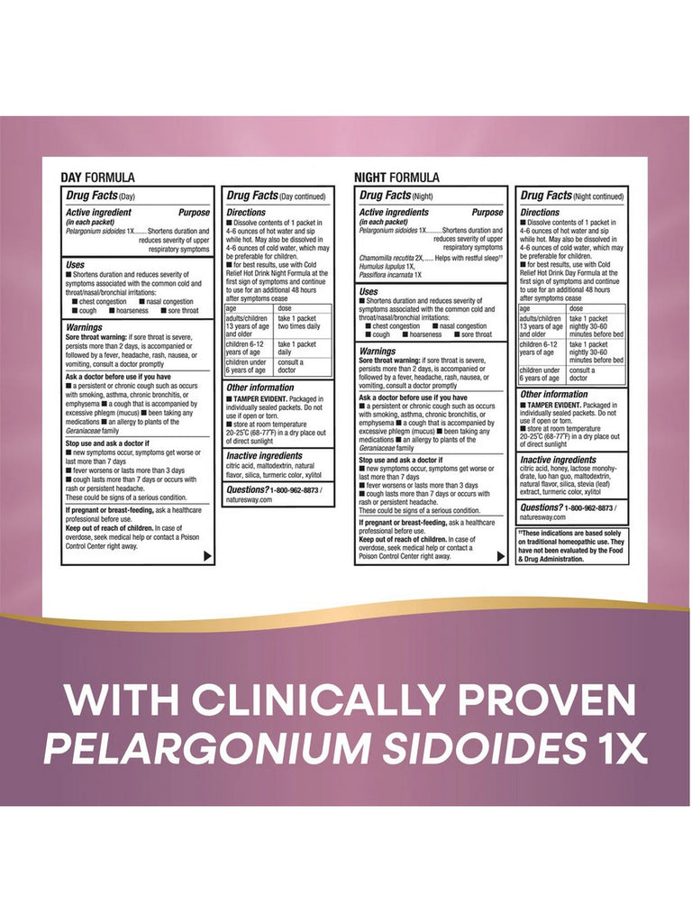 Nature's Way, Umcka Cold Care Hot Drink Day + Night, Lemon Citrus and Honey Lemon, 12 Packets