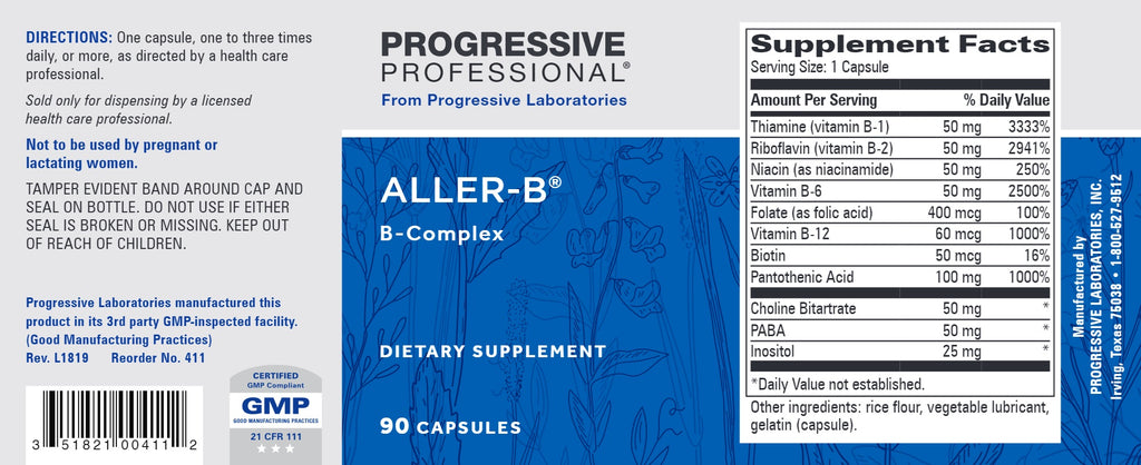 Aller-B is a high potency B complex in capsule form containing no allergy-provoking fillers and binders.