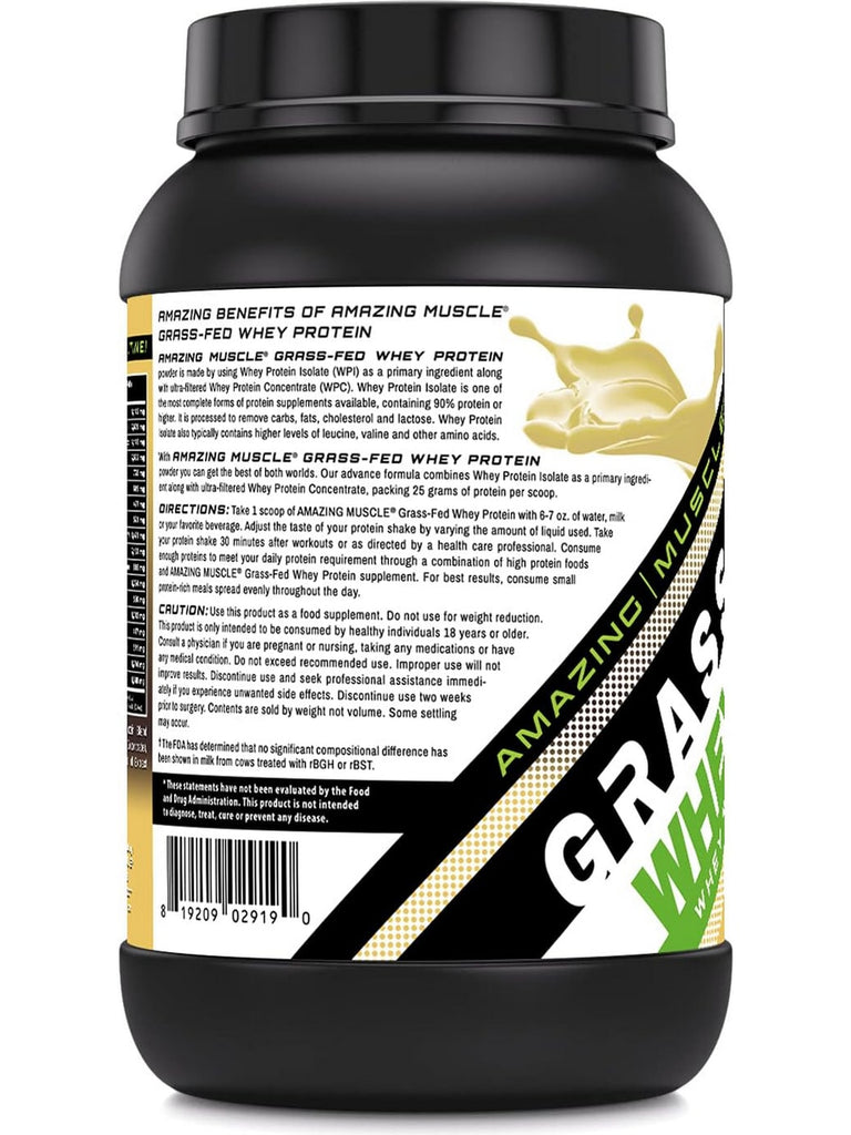 Amazing Muscle, Grass-Fed Whey Protein, Vanilla, 2 lbs