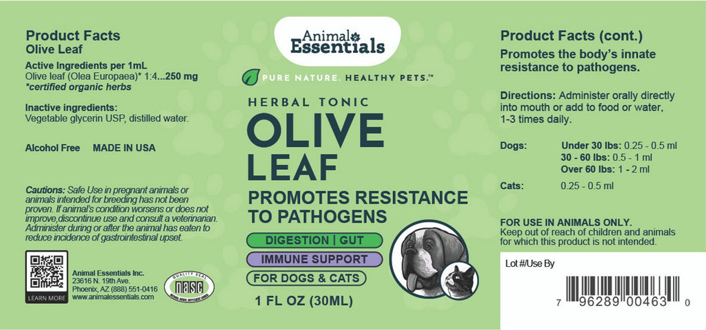 Fight back against viruses, bacteria and fungi with Animal Essentials Olive Leaf Herbal Extract Immune Support for Dogs. This immune support supplement promotes the body's innate resistance to pathogens. This liquid formula is alcohol free and formulated with organic herbs. Featuring a simple formula to promote healthy immune functions against pathogenic bacteria, fungi and viruses.