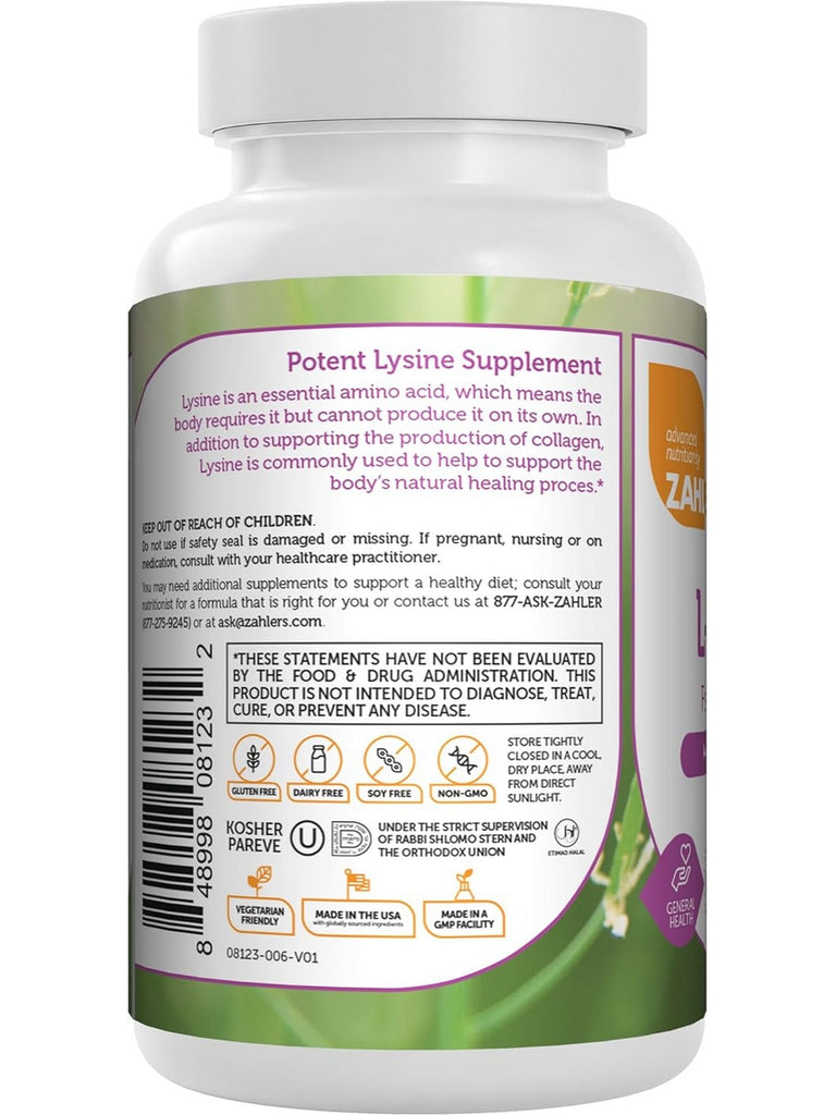 Advanced Nutrition by Zahler, L-Lysine, 60 Capsules