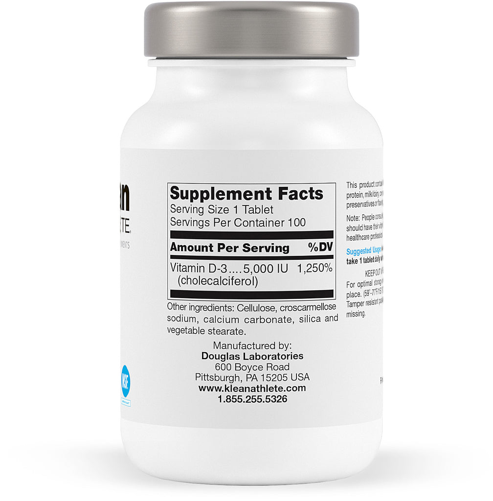 Klean-D contains 5,000 IU of natural vitamin D3 per tablet. Vitamin D supplementation may help support immune health, musculoskeletal strength and physical performance in athletes.