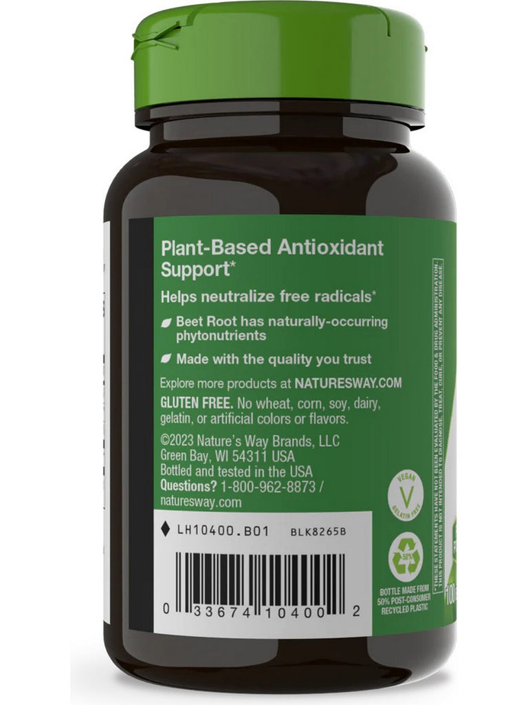 You can't beat the beet. Beets are a common root vegetable that you've probably eaten in salads or sides; beets can be red, yellow, purple, or white. Beet Root is one of the more popular botanicals in the market today. Nature's Way Beet Root supports antioxidant pathways and free radical scavenging activity.