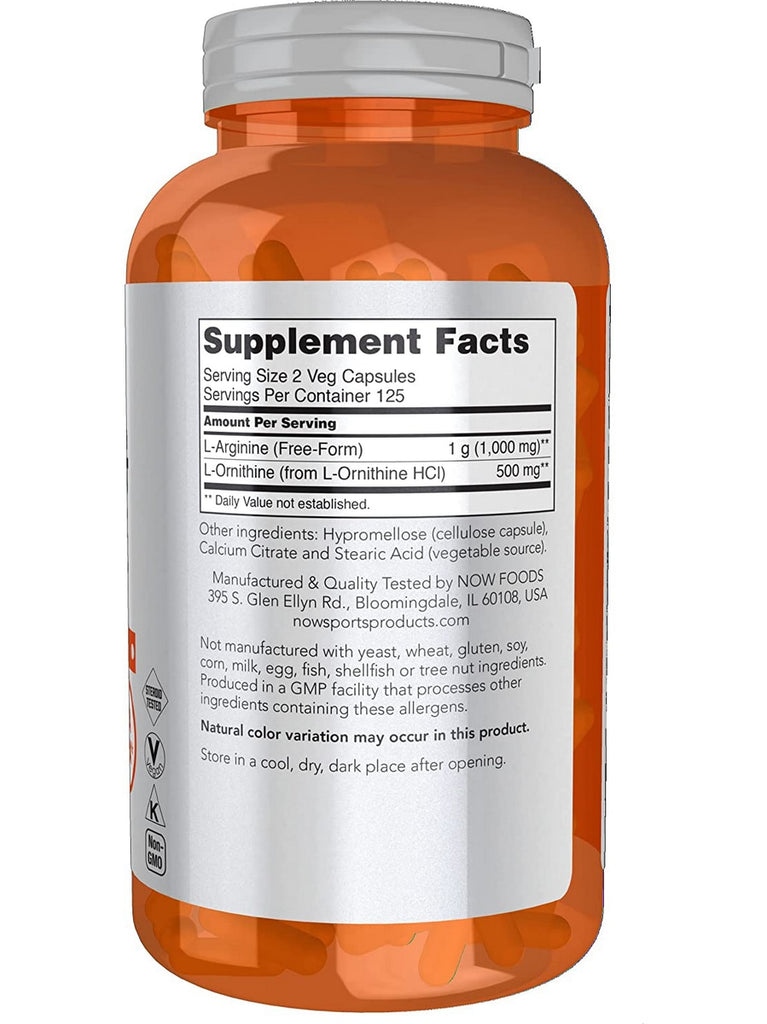 NOW Foods, Arginine & Ornithine 500 mg/250 mg, 100 veg capsules