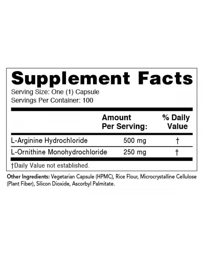 Olympian Labs Arginine & Ornithine pairs two amino acids together in a specific ratio for optimum muscle growth and repair support.