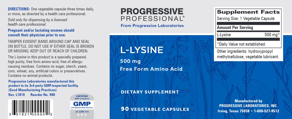 Progressive Labs, L-Lysine, 500 mg, 90 Vegetable Capsules
