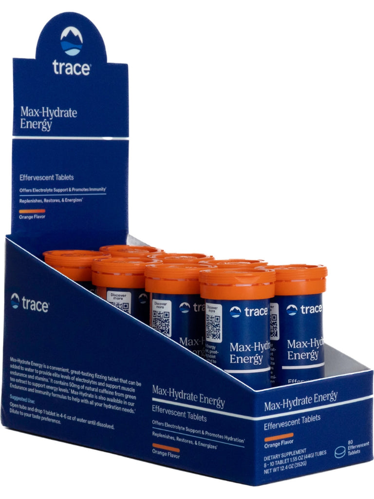 Trace Minerals, TMSPORT, Max-Hydrate Energy, Orange Effervescent, 8 Tubes