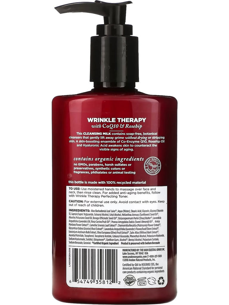 Avalon Organics, Wrinkle Therapy with CoQ10 & Rosehip Cleansing Milk, 8.5 fl oz