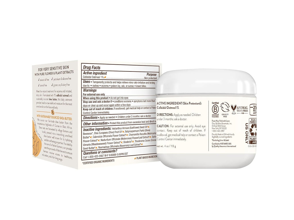 Meet the natural treatment for eczema and irritated, itchy skin. Developed to relieve skin rashes, eczema and cracked or chapped skin, the Sensitive Baby All Natural healing Ointment is formulated with 1% colloidal oatmeal, a plant-based skin protectant, and comes in a 25% post-consumer recycled plastic jar. This baby ointment provides head-to-toe relief for the most sensitive skin on the face, body and diaper area. Created without fragrance, essential oils, mineral oil, petroleum, or silicones, this steroid-free natural treatment for eczema is made with plant-based ingredients and contains 99% of organic ingredients to intensely soothe skin, even itching due to insect bites and poison ivy. Our sustainably sourced Shea Butter supports village farmers in highlands of Guinea.