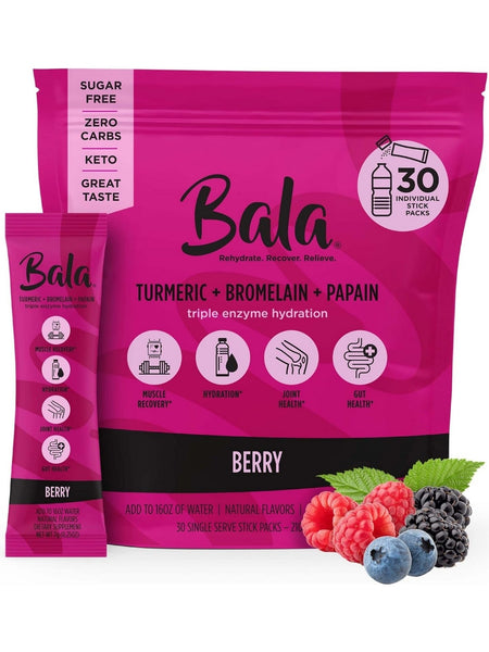 Bala Enzyme, Turmeric + Bromelain + Papain Triple Enzyme Hydration, Berry, 30 Single Serve Stick Packs