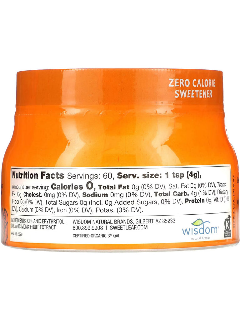 SweetLeaf, SweetLeaf Organic Monk Fruit Powder Sweetener Cannister, 240 gm