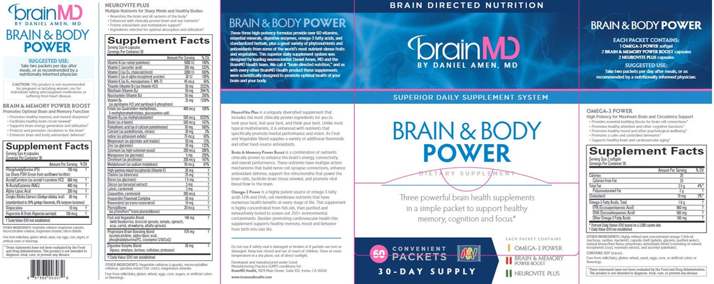 Convenience usually comes at a cost…but with Brain & Body Power, it comes at a discount. This foundational, doctor-developed supplement protocol delivers clinically validated doses of three powerful supplements: NeuroVite Plus Multivitamin for comprehensive daily health with over 50 pure & potent nutrients, Omega-3 Power for 5x more omega-3s than other leading brands, and Brain & Memory Power Boost for enhanced memory and cognitive function in convenient, grab-and-go packets.