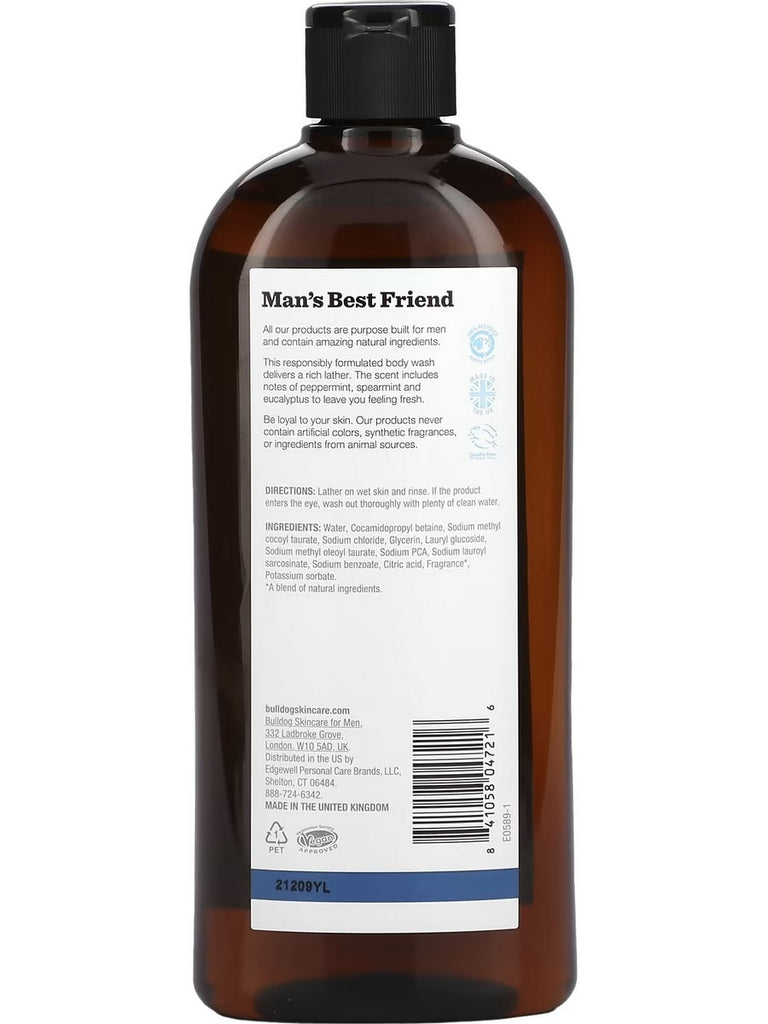 Bulldog Skincare, Peppermint and Eucalyptus Body Wash, 16.9 fl oz
