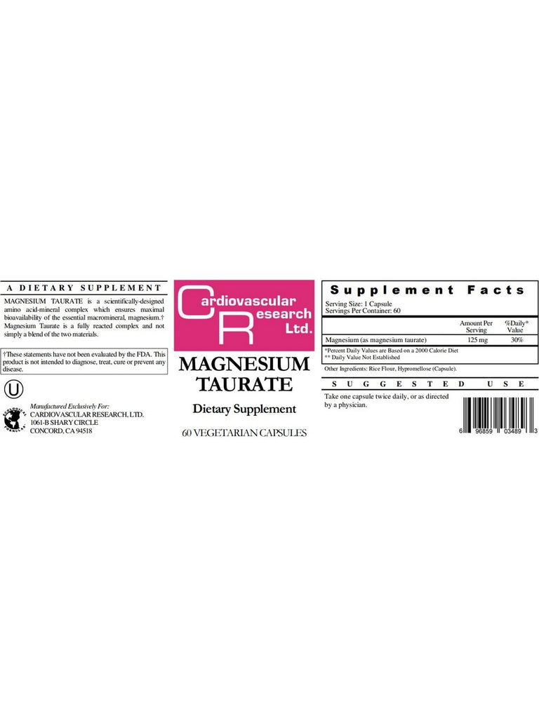 Cardiovascular Research Ltd., Magnesium Taurate, 60 Vegetarian Capsules