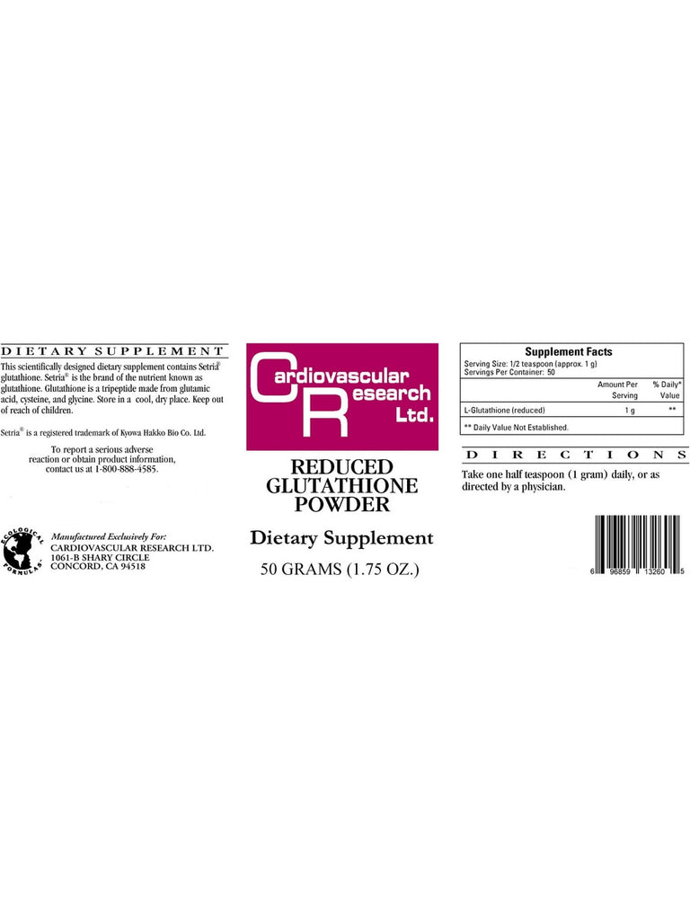 Cardiovascular Research Ltd., Reduced Glutathione Powder, 50 grams