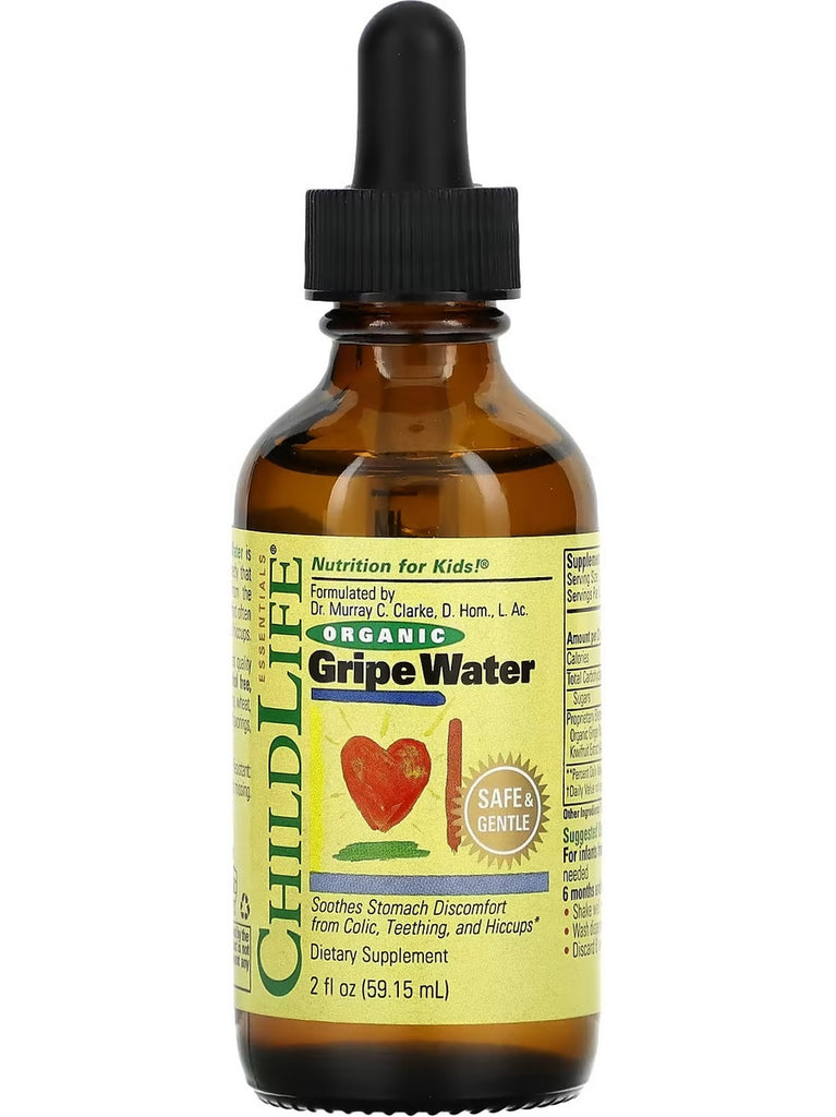 ChildLife Essentials Organic Gripe Water for babies is a liquid herbal supplement that contains a combination of soothing and calming herbs used to comfort infants experiencing bloating and stomach discomfort often associated with occasional hiccups.