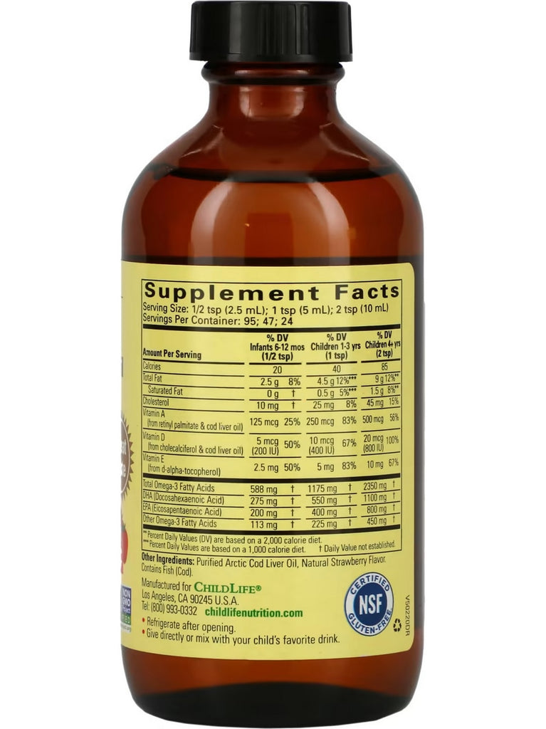 ChildLife Essentials Cod Liver Oil is the perfect nutritional supplement for growing infants and children, with a strawberry flavor they will enjoy.