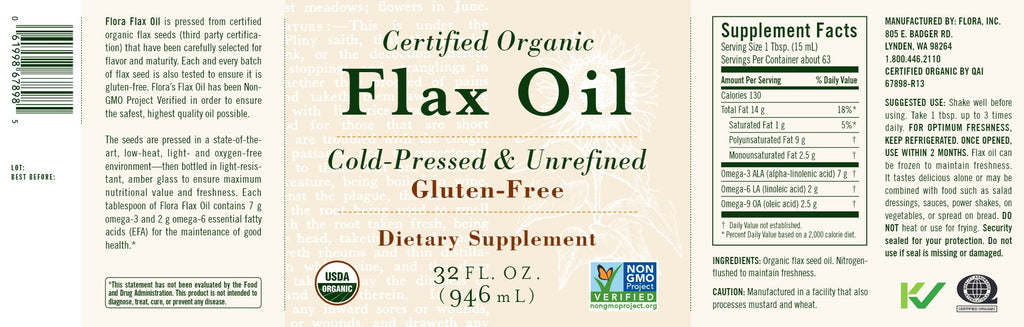 Flora, Flax Oil, Cold-Pressed & Unrefined, 32 fl oz