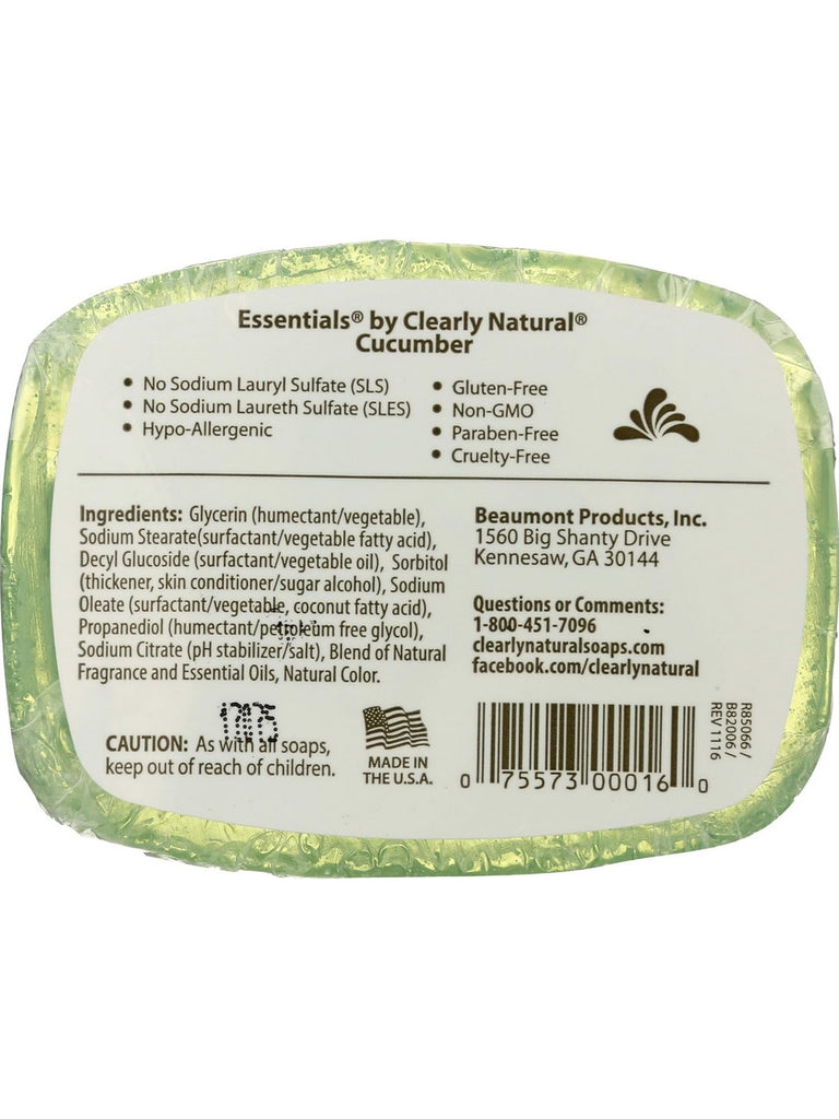Clearly Natural, Glycerine Bar Soap, Cucumber, 4 oz