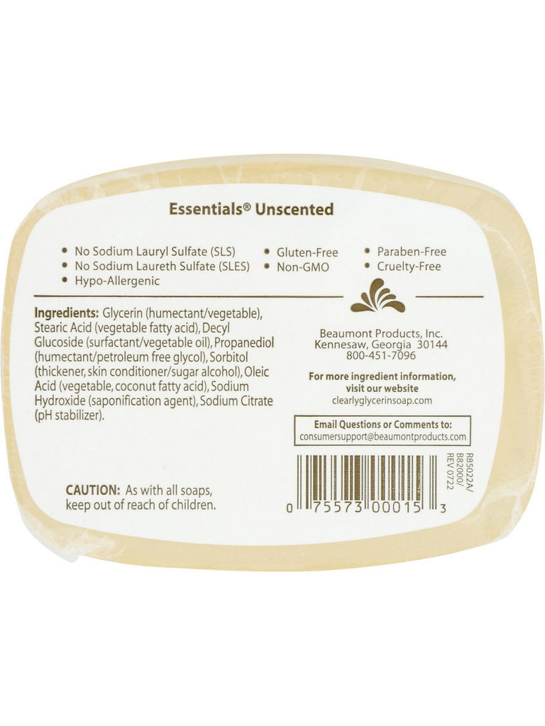 Clearly Natural, Glycerine Bar Soap, Unscented, 4 oz