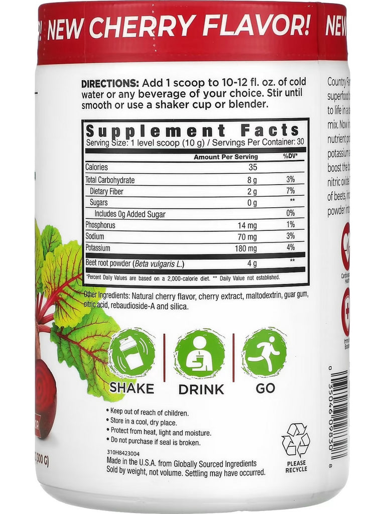Country Farms, Bountiful Beets, Whole Food Beet Extract, Cherry, 10.6 oz