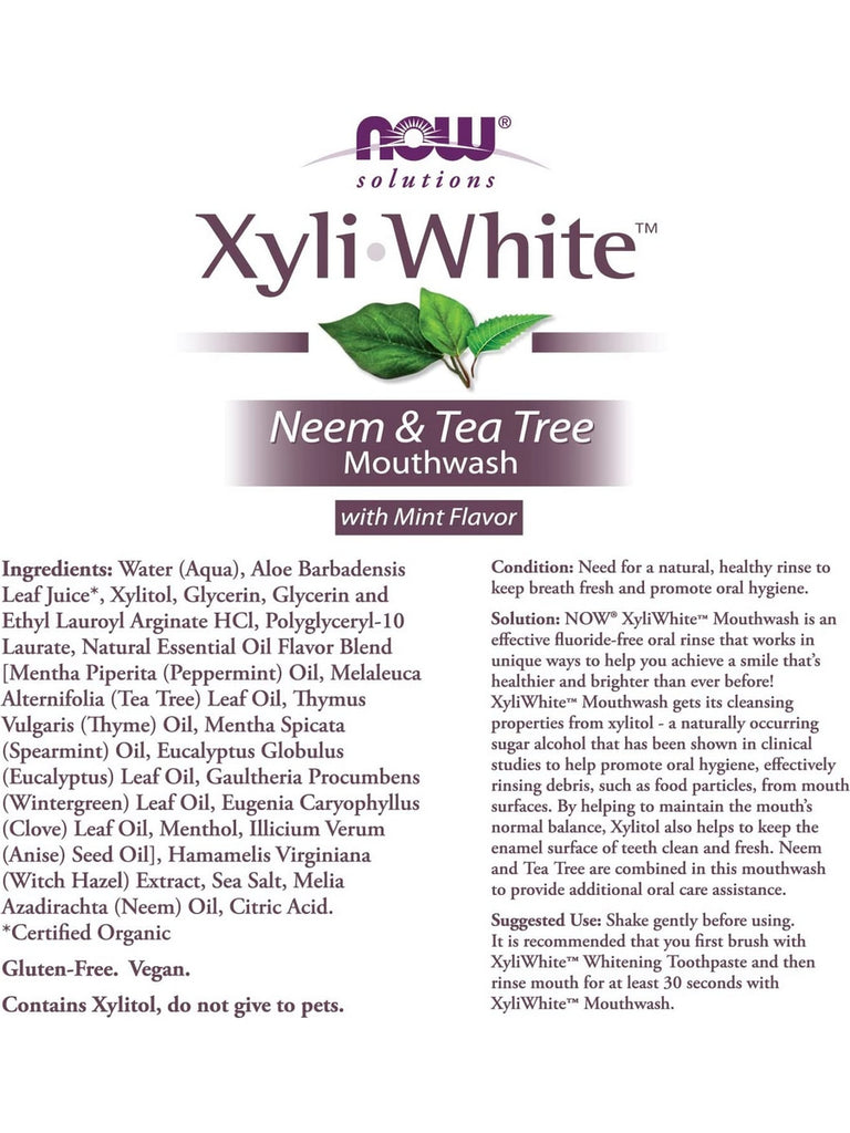 NOW Foods, XyliWhite™, Neem & Tea Tree Mouthwash with Mint Flavor, 16 fl oz