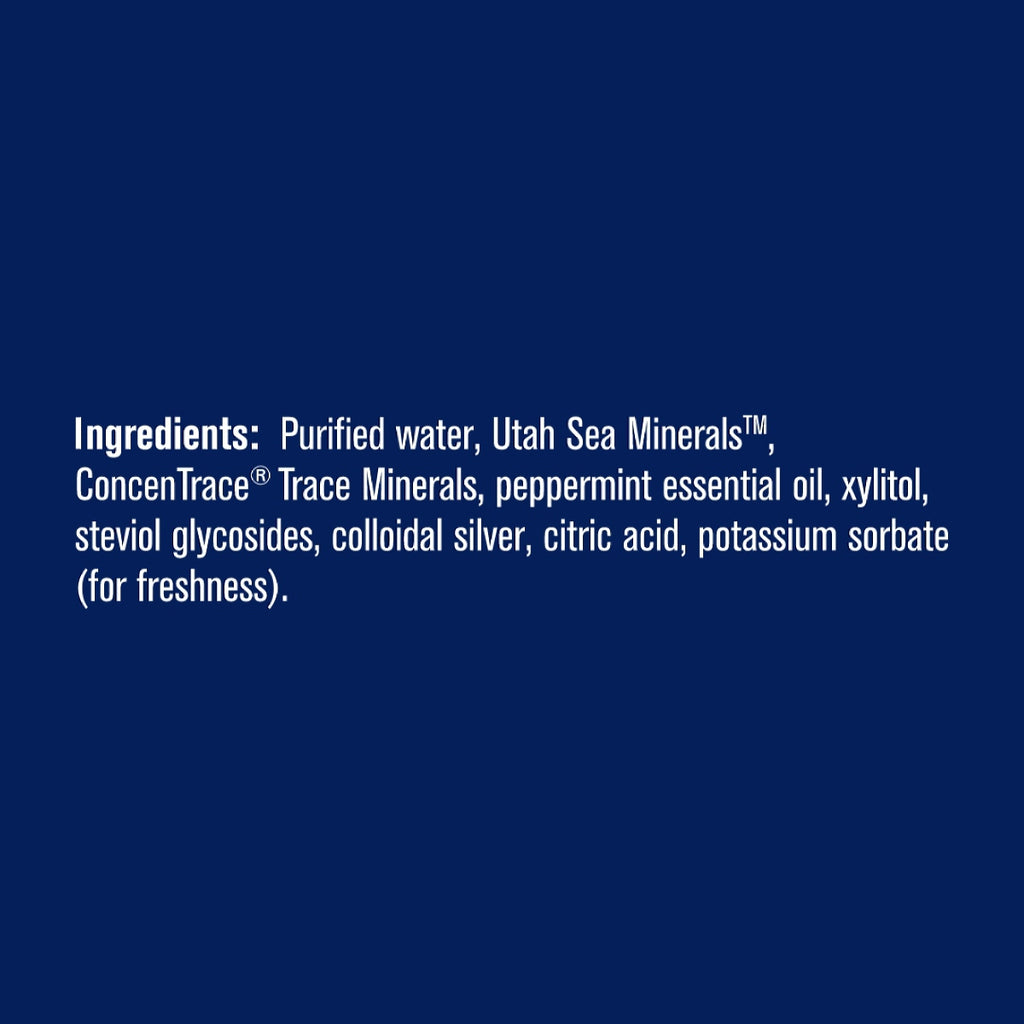 ConcenTrace Mineral Mouth Rinse is a gentle rinse that helps to promote fresh breath and a clean feeling the natural way. It’s made with ConcenTrace ionic trace minerals, America’s #1 selling trace mineral supplement according to SPINS data, colloidal silver, and peppermint essential oil. This unique blend helps rinse your teeth and gums of food debris while the minerals help to neutralize odors and acidic foods that cause bad breath, leaving your mouth clean and your breath fresh.