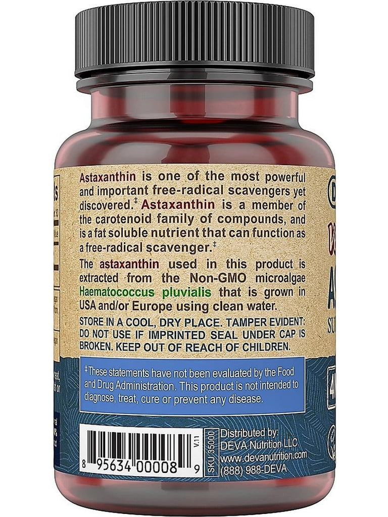DEVA Nutrition, Vegan Astaxanthin Super Carotenoid, 4 Mg, 30 Vegan Caps