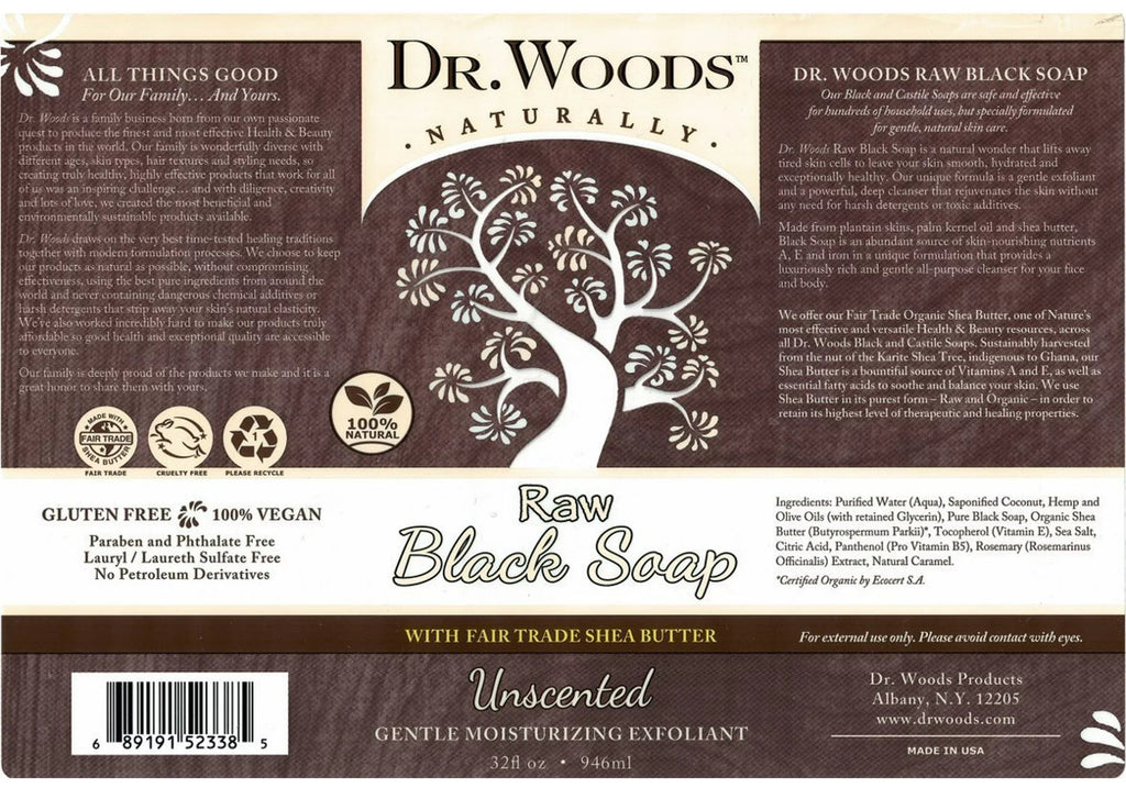 Dr. Woods Raw Black Soap is a natural wonder that lifts away tired skin cells to leave your skin smooth, hydrated and exceptionally healthy. Our unique formula is a gentle exfoliant and a powerful, deep cleanser that rejuvenates the skin without any need for harsh detergents or toxic additives.