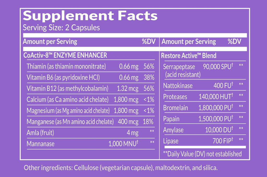 - Contains Nattokinase, Serrapeptase, Papain and other proteases