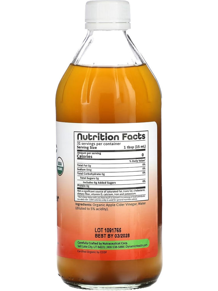 Dynamic Health, Apple Cider Vinegar with Mother, Glass, 16 fl oz