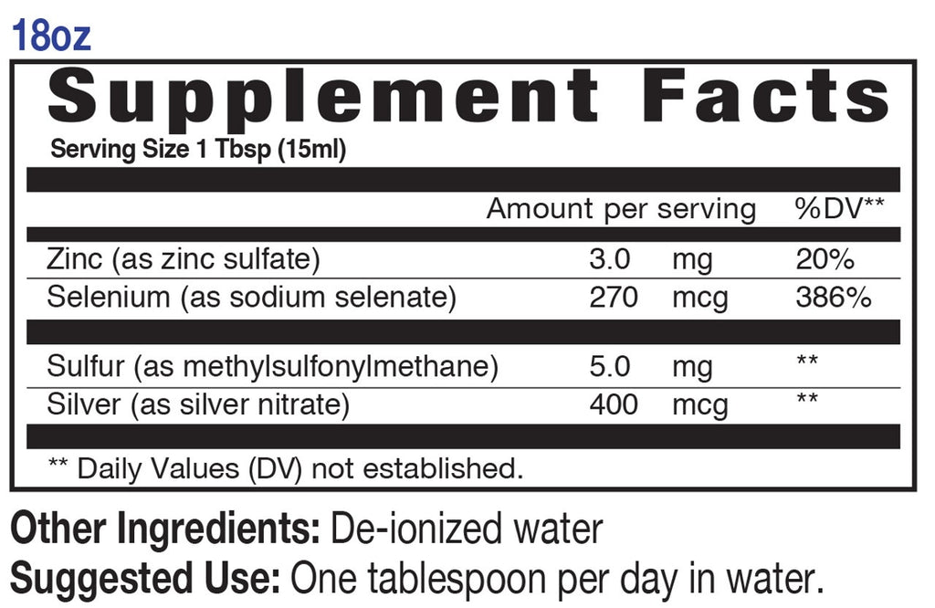Eidon Immune Support is an incredibly effective formulation designed to support and maintain a healthy immune system. The blend of Zinc, Selenium, Sulfur and Silver is a combination optimized to give the body essential mineral nutrients to effectively and naturally deal with seasonal challenges. Eidon Immune Support can also be used topically. This mineral blend is a must for every medicine cabinet and every traveler!