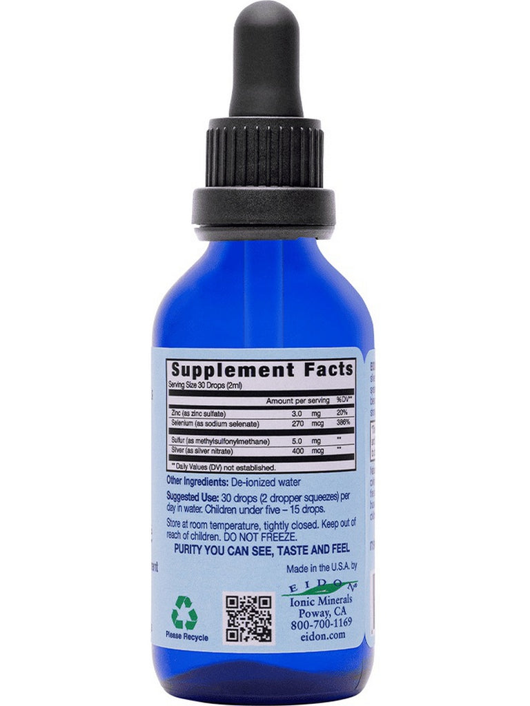 Eidon Immune Support is an incredibly effective formulation designed to support and maintain a healthy immune system. The blend of Zinc, Selenium, Sulfur and Silver is a combination optimized to give the body essential mineral nutrients to effectively and naturally deal with seasonal challenges. Eidon Immune Support can also be used topically. This mineral blend is a must for every medicine cabinet and every traveler!
