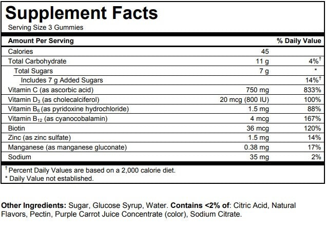 Take three (3) gummies daily. Do not exceed suggested use. Not formulated for use in children.
