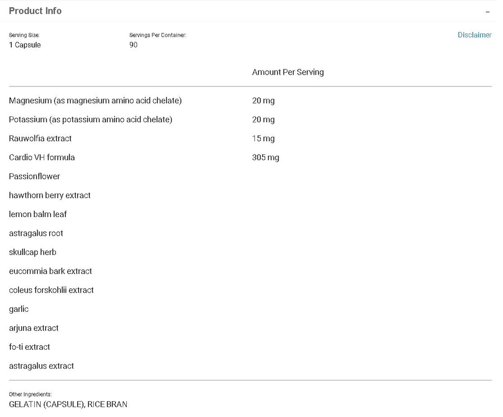 Empirical Labs Cardio VH contains magnesium, potassium, Rauwolifa and heart-healthy herbs to support circulation and cardiovascular health.