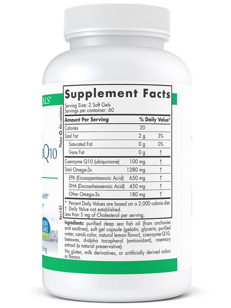 - Double-strength EPA+DHA for more omega-3s in fewer soft gels plus 100 mg ubiquinone-form CoQ10