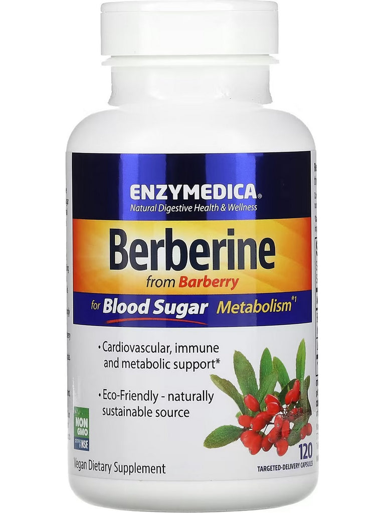 - The alkaloid berberine has long been used for various health benefits. Sustainably sourced from barberry, Enzymedica’s Berberine supports healthy blood sugar already within the normal range, along with the immune and cardiovascular systems.