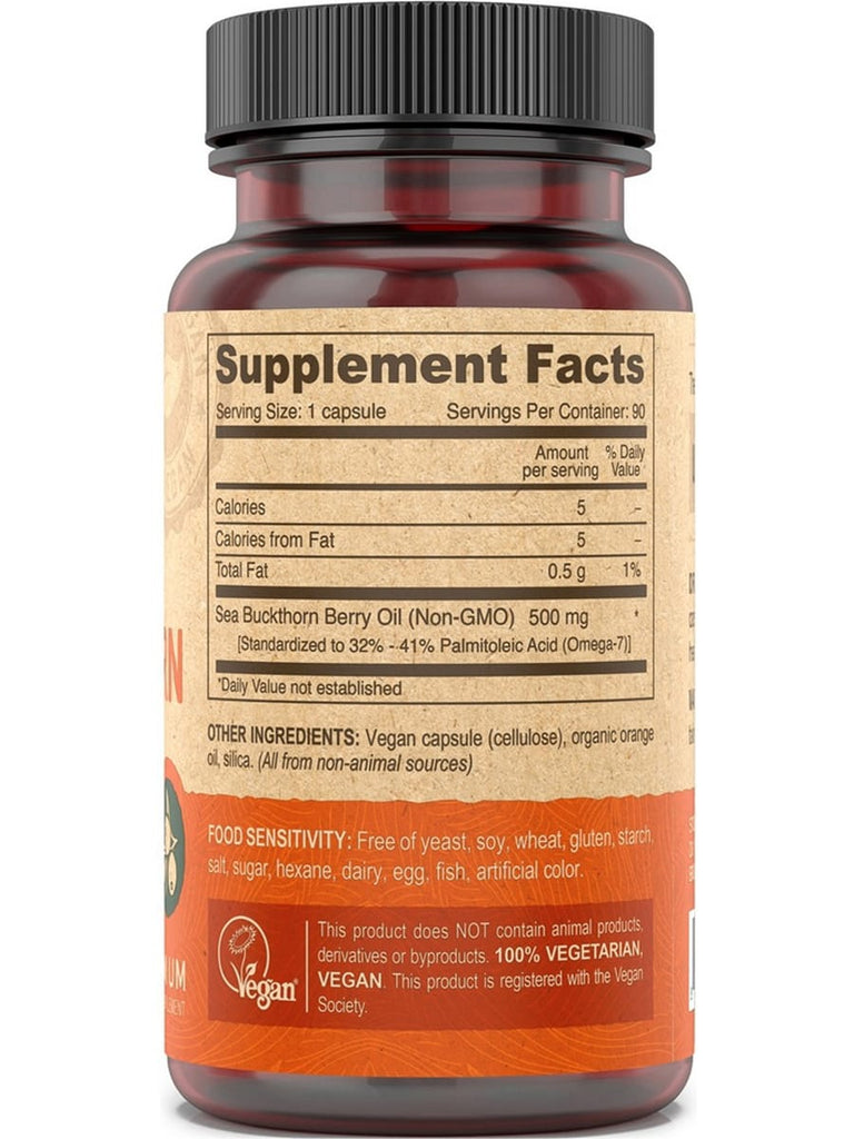 DEVA Vegan Sea Buckthorn Oil is 100% animal free, and guaranteed for purity, freshness and labeled potency. Remember all DEVA Products are 100% vegan, vegetarian and are registered with the Vegan Society, the non-profit organization that actually invented the word "vegan".