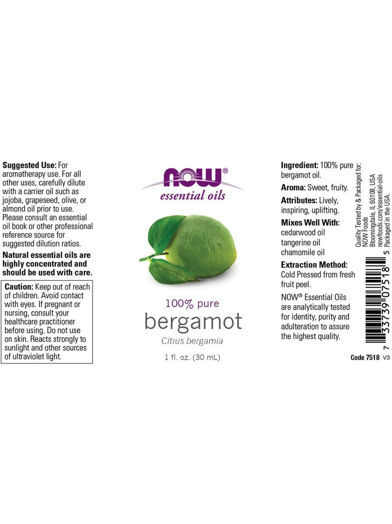 NOW Foods, Bergamot Oil, 100% Pure, 1 fl oz