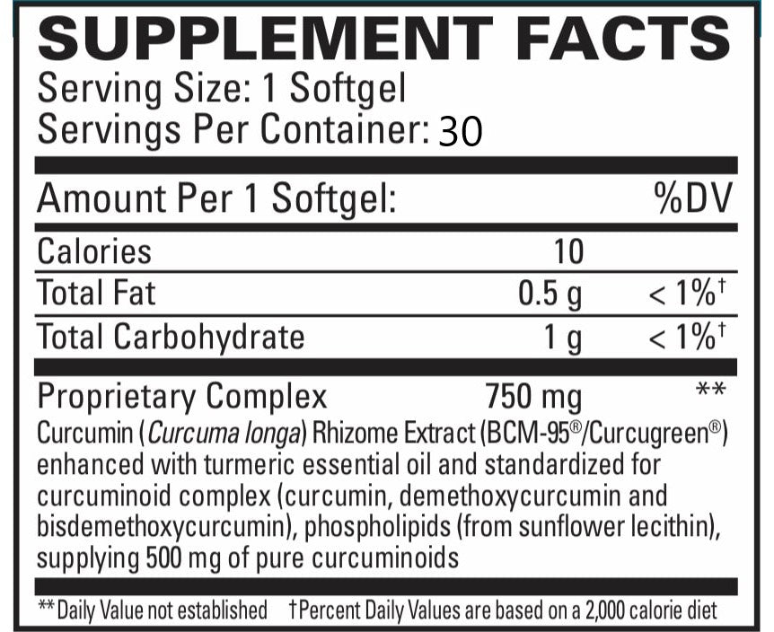 CuraPro delivers up to 500 times more curcumin to the bloodstream than turmeric, and has a sustained retention time at significant levels in the bloodstream. This high-potency formula, featuring a clinically studied, enhanced absorption curcumin, yields a minimum of 500 mg of curcuminoids per softgel.