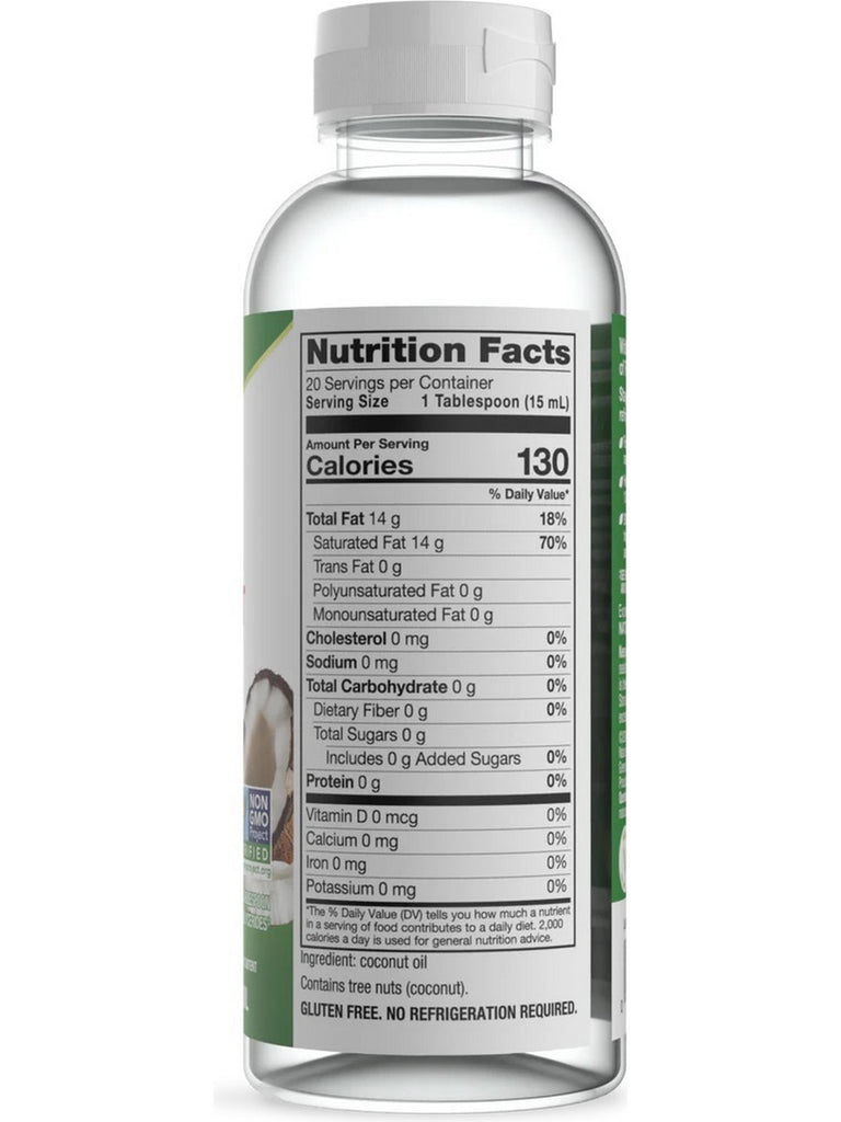How do you use Nature's Way Liquid Coconut Oil? This versatile oil can be used in a variety of ways throughout your wellness routine. It's flavorful and aromatic, making it the perfect addition to dressings, dips, and smoothies or try it for cooking, baking, and sautéing up to 350 degrees. Liquid Coconut Oil provides 13g of medium chain triglycerides per serving.