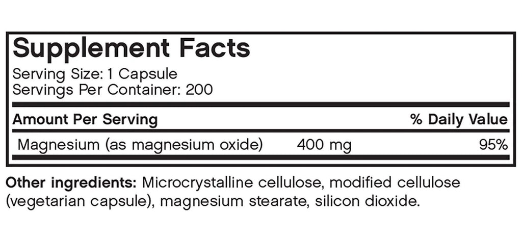 - 400mg of Magnesium per capsule