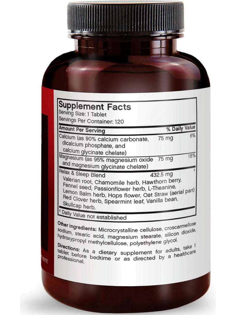 Relax & Sleep is a gentle, non-addictive sleep support supplement that helps your body naturally prepare for sleep and rest. Without proper rest, our bodies can see negative effects such as a weakened immune system, poor brain function, and possible weight gain. Futurebiotics herbal relaxation tablets are made with Calcium, Magnesium, and natural sleep supporting herbs like Valerian root, Chamomile, and Hawthorn Berry. Calcium and Magnesium have both been shown to promote relaxation, sleep and aid in alleviating insomnia. Although we can get both vitamins from foods such as avocados, nuts, dairy products and dark, leafy vegetables, it can be hard to get a suitable amount through diet alone. One tablet of our Relax & Sleep support supplement should be taken before bedtime or as directed by a healthcare professional to support a healthy night of rest.