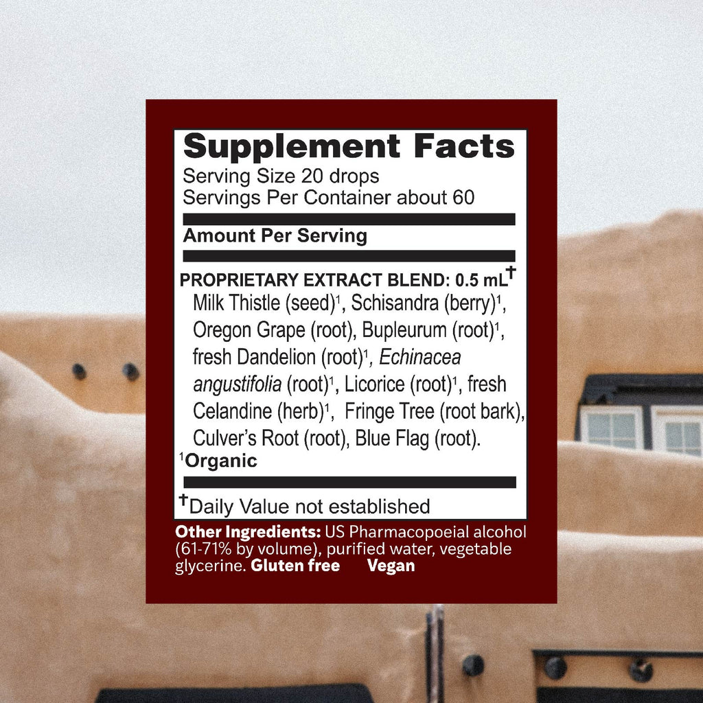 Liver Tonic is made with liver and gall bladder health promoting herbs, including Milk Thistle, Schisandra and Oregon Grape.