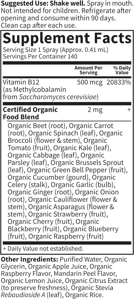Garden of Life, MyKind Organics, B-12 Organic Spray, Raspberry, 2 fl oz