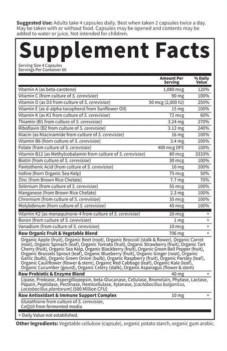 Adults take 4 capsules daily. Best when taken 2 capsules twice a day. May be taken with or without food. Capsules may be opened and contents may be added to water or raw juice. Not intended for children.