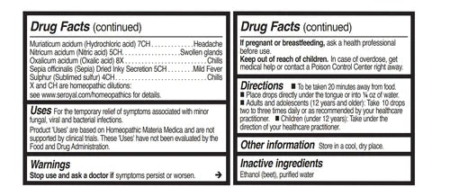 Place 10 drops of Fungisode under the tongue two to three times daily‚ 20 minutes before or after meals unless otherwise directed. Each bottle of Fungisode by Seroyal contains one ounce of liquid.