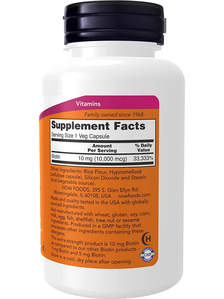 NOW Foods, Biotin 10 mg (10,000 mcg), Extra Strength, 120 veg capsules