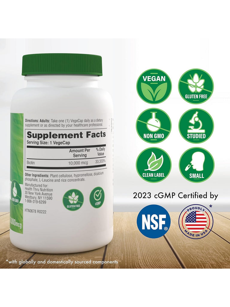 Health Thru Nutrition, Biotin (Vitamin B7), 100 VegeCaps