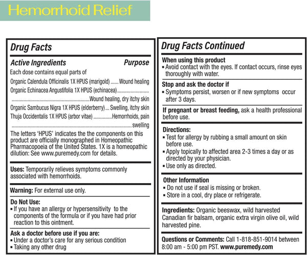 Puremedy's Hemorrhoid Relief Ointment is an effective, yet gentle herbal salve formulated to relieve symptoms associated with hemorrhoids. This formula provides soothing relief to the area and can help to reduce healing time, it contains a potent blend of Canadian fir balsam, pine extract and calendula extract to draw out impurities and nourish skin. Herbs, plants, roots and tree extracts like those found in this salve have been used by indigenous cultures for thousands of years for various ailments.